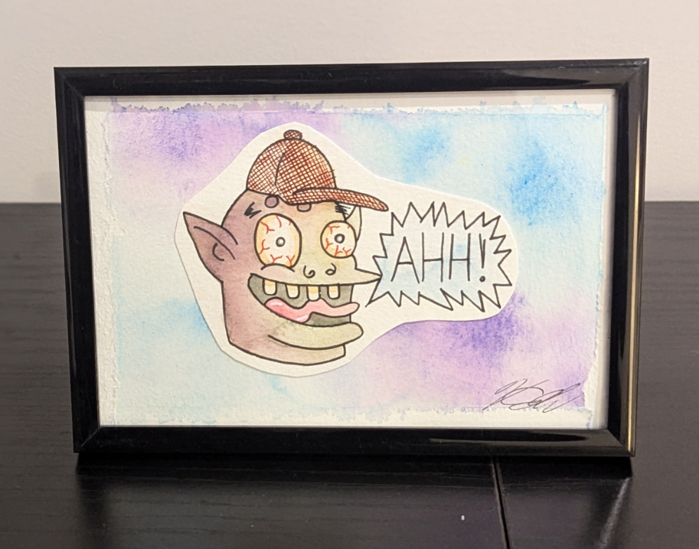 One of the first paintings of Vern, the alien who just wants to fit in but sometimes he's not very good at it as he finds humans so confusing. Jokes on us, he might be more logical than any of us earthlings.
